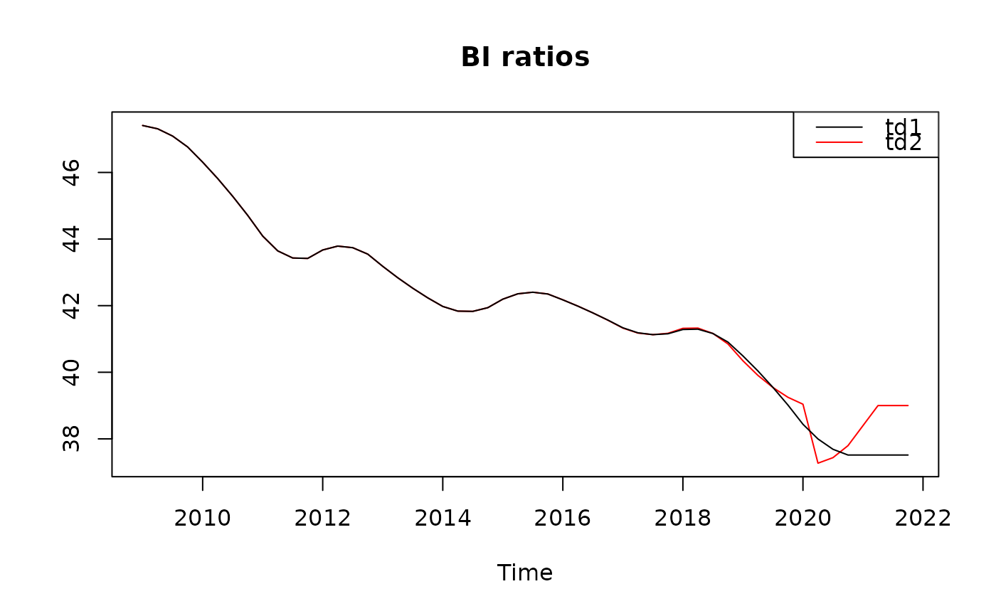 stats::ts.plot(bi2, bi1, main = "BI ratios",