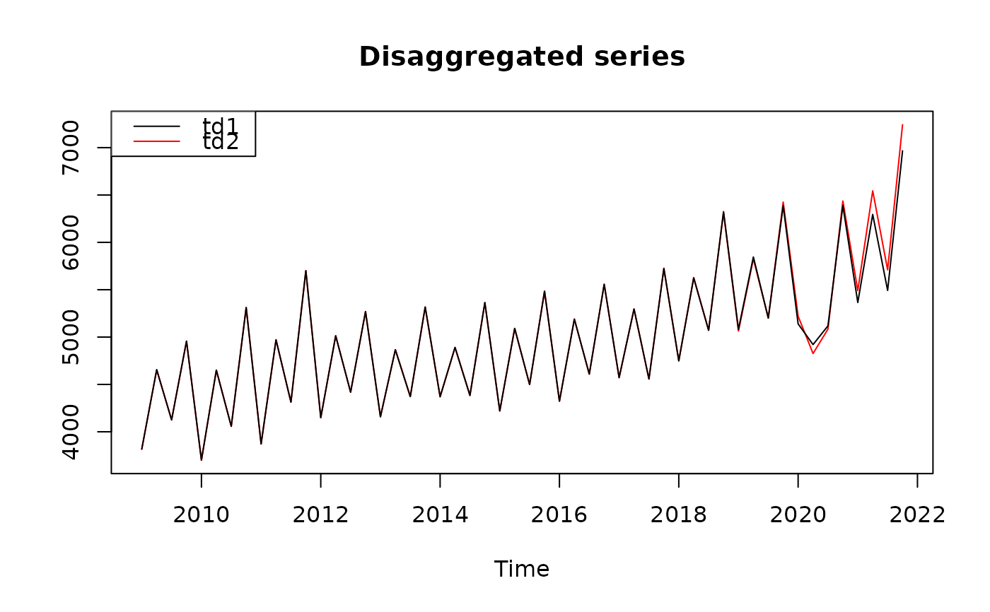 stats::ts.plot(y2, y1, main = "Disaggregated series",